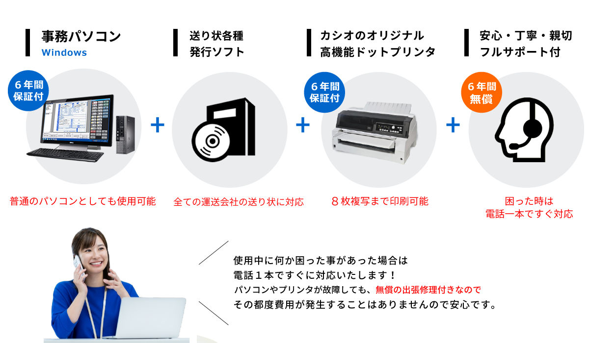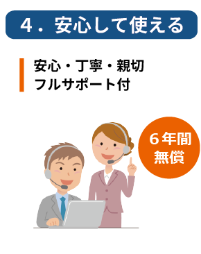 ですので、操作方法で困った時も、安心です。このサポートにはリモートサポート(遠隔操作)が含まれており、問題が起きれば、すぐに対処できるので、業務を止めることはありません。また6年間無償なので、導入後に発生する費用は消耗品だけなので安心です。
