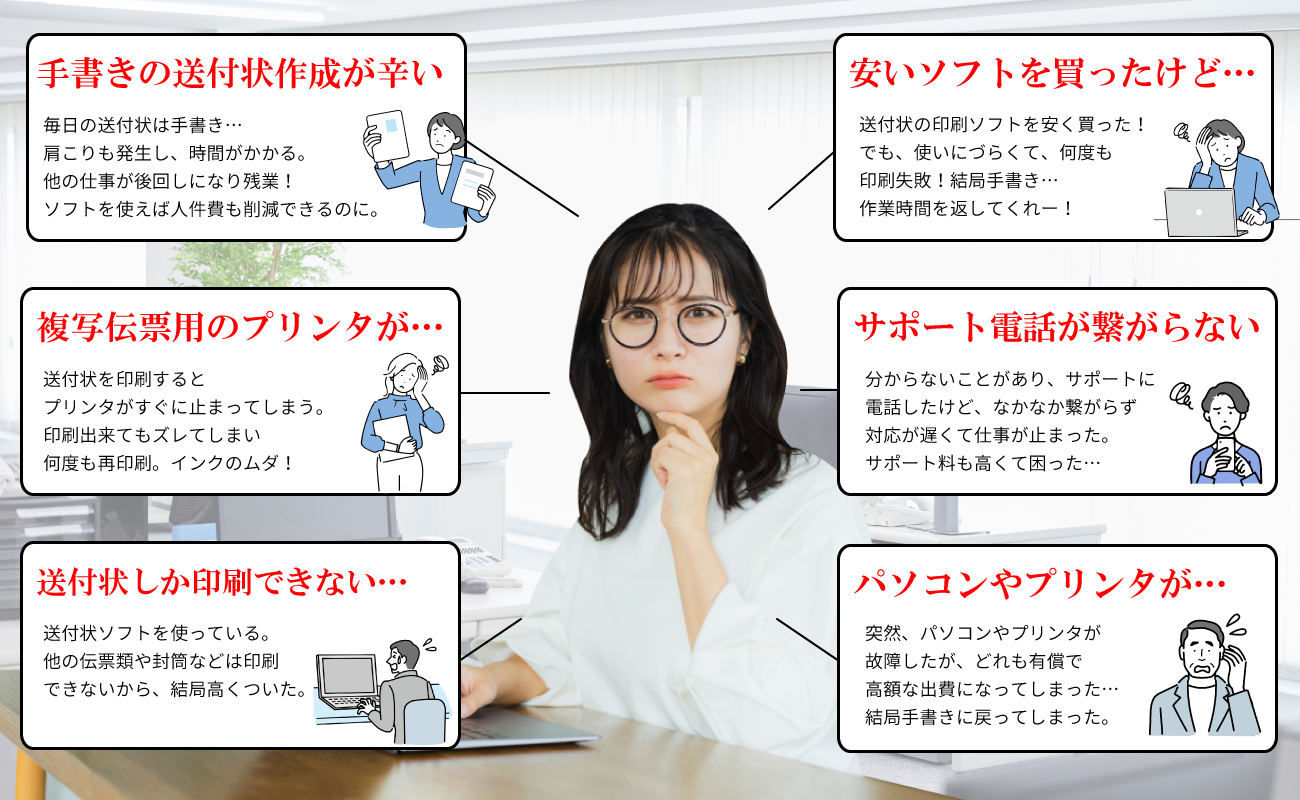 送り先が同じなのに、送り状、納品書、領収書、封筒などの
