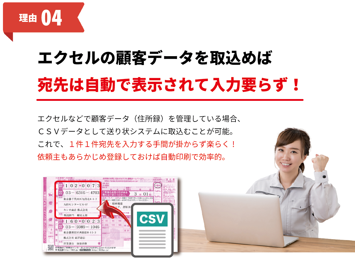 送り状の宛先住所などを、1件1件入力するのが面倒。