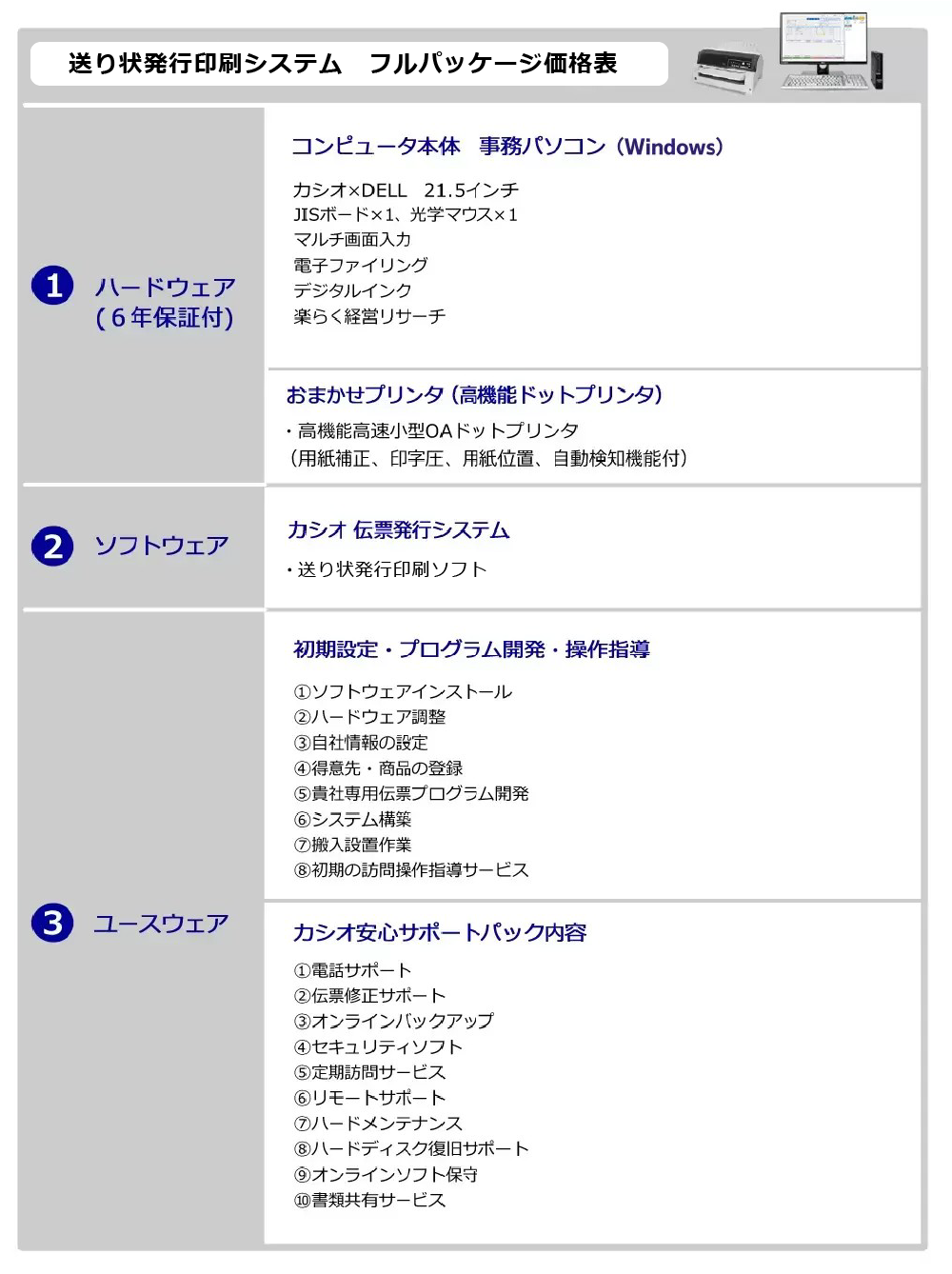 カシオの送り状発行システムには必要なものが全て揃っているので導入後はすぐに使い始められます!