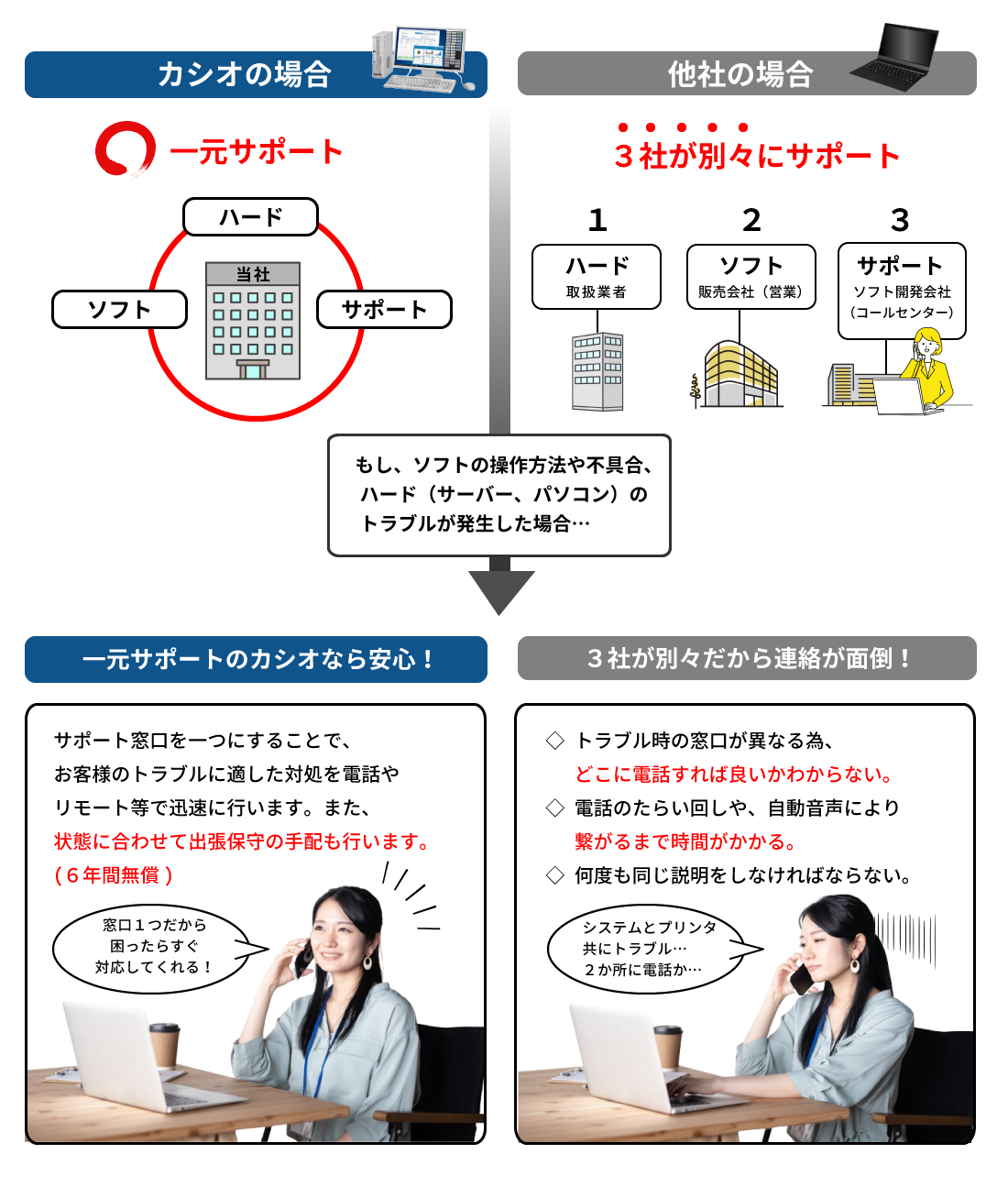 カシオは一元サポートだから