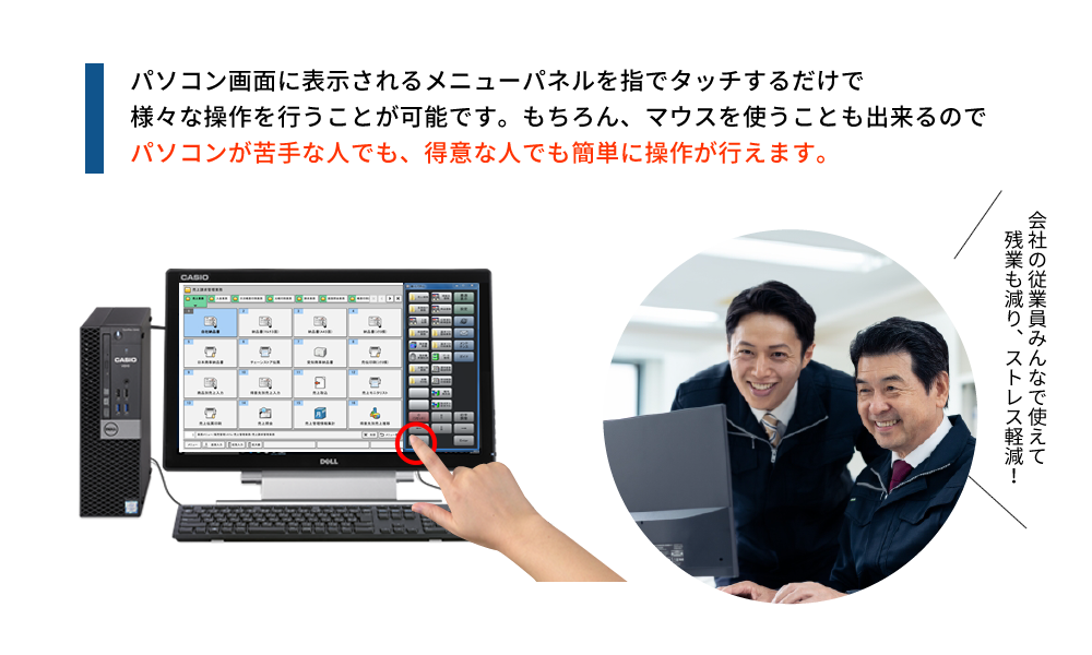 カシオは簡単な機能が満載なので、会社のみんなで使えます!みんなで使えることで、作業が分担化され、残業も大幅に減らすことができます。