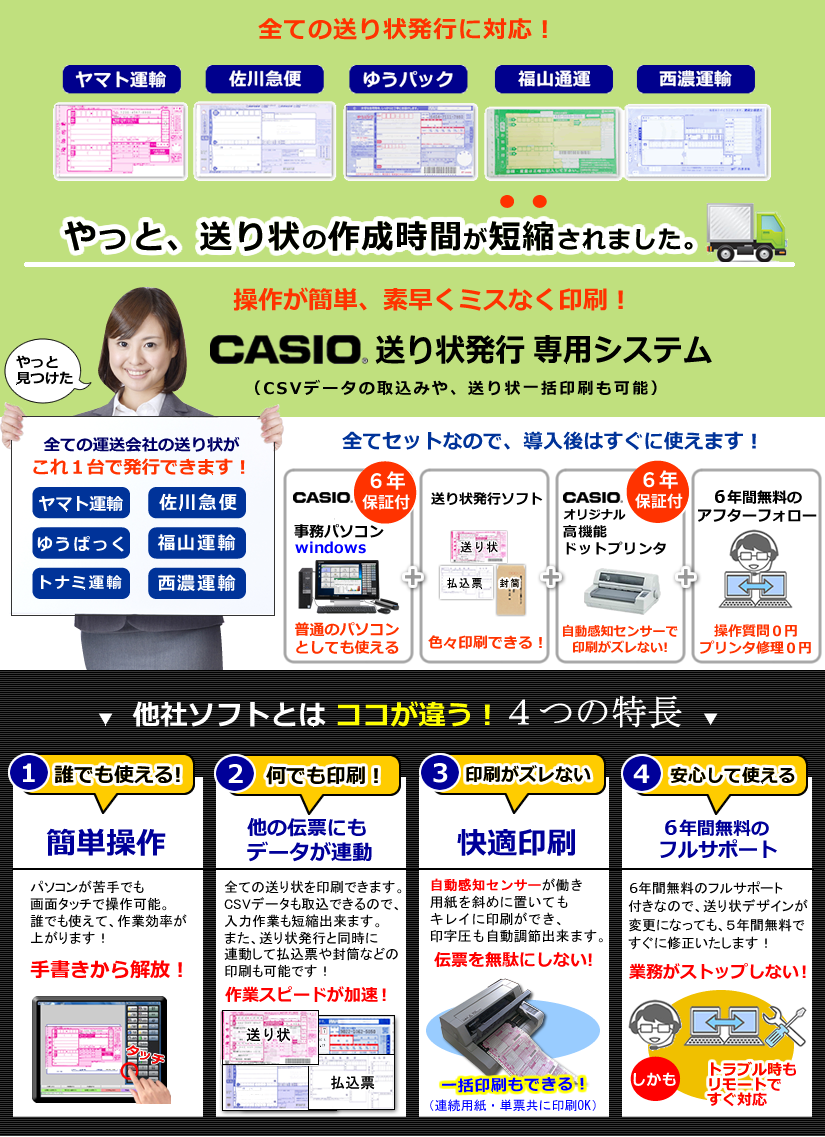 カシオ送り状発行システムは、たくさんの送り状を発行している方の為に