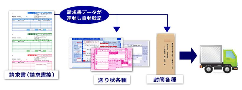 送り先が同じなのに、送り状、納品書、領収書、封筒などの